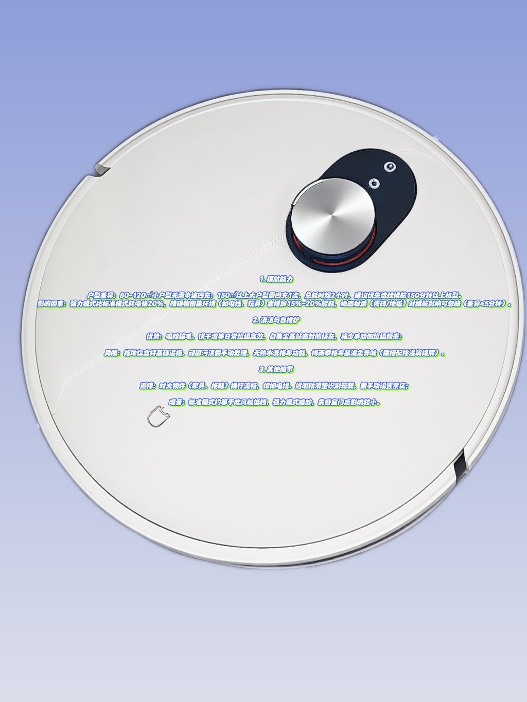 大户型/障碍密集区:150㎡以上需频繁回充,杂物多的环境易卡滞;